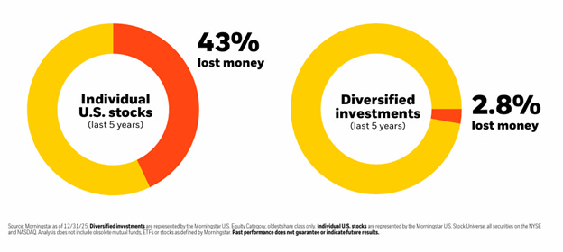Owning a combination of funds with hundreds or thousands of positions is admittedly less exciting than picking individual names, but the diversified strategy is much more effective at managing risk, and in retirement planning, nothing is more important.