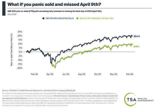 Last year, those who sold out of fear (or sold because they had limit orders in place) on April 8th could have missed just one trading day and underperformed a buy-and-hold investor by nearly 11%