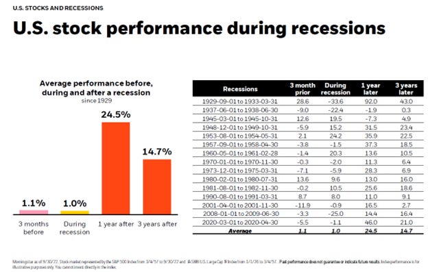 In other words, knowing whether we are in, or will be in, a recession wouldn’t tell me anything about future stock returns. The markets can go higher either way and trying to time the bottom never works. Given these historical data points, the only reasonable way I know to trade this would be to stay course on your existing financial plan and keep cheering for the Astros.
