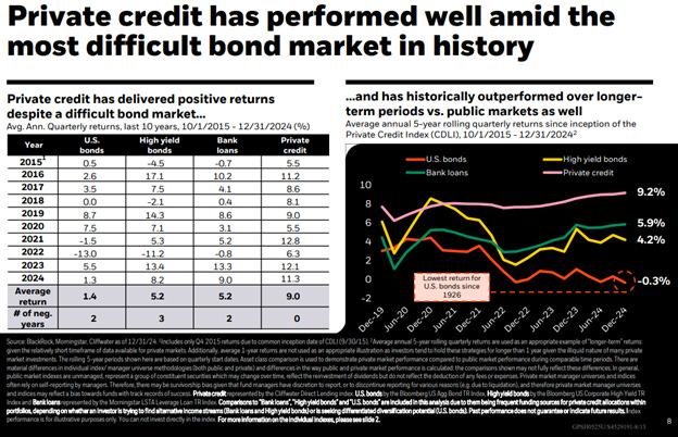 A few weeks ago, I spoke with a manager at a large private credit fund that lends to non-public companies. He was a true believer in the space and pointed to charts showing that private credit hadn’t lost money in any year over the past decade—even as the rest of the bond market has struggled.