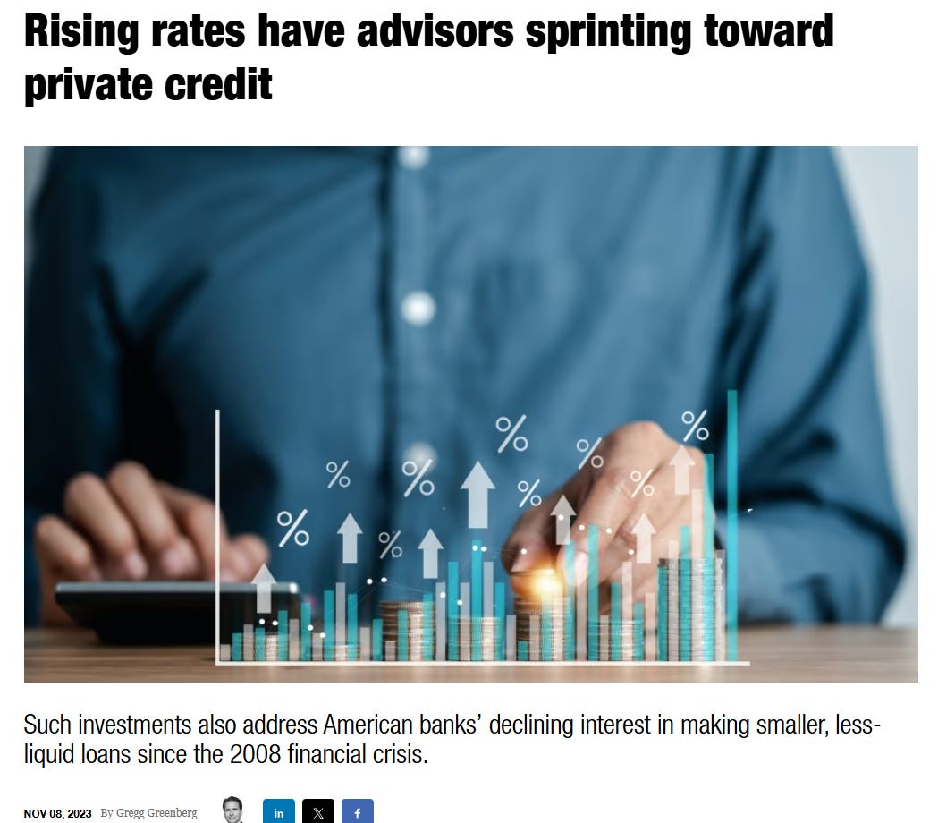 The resulting article (found here - “Rising rates have advisors sprinting toward private credit”) ended with my note of caution: