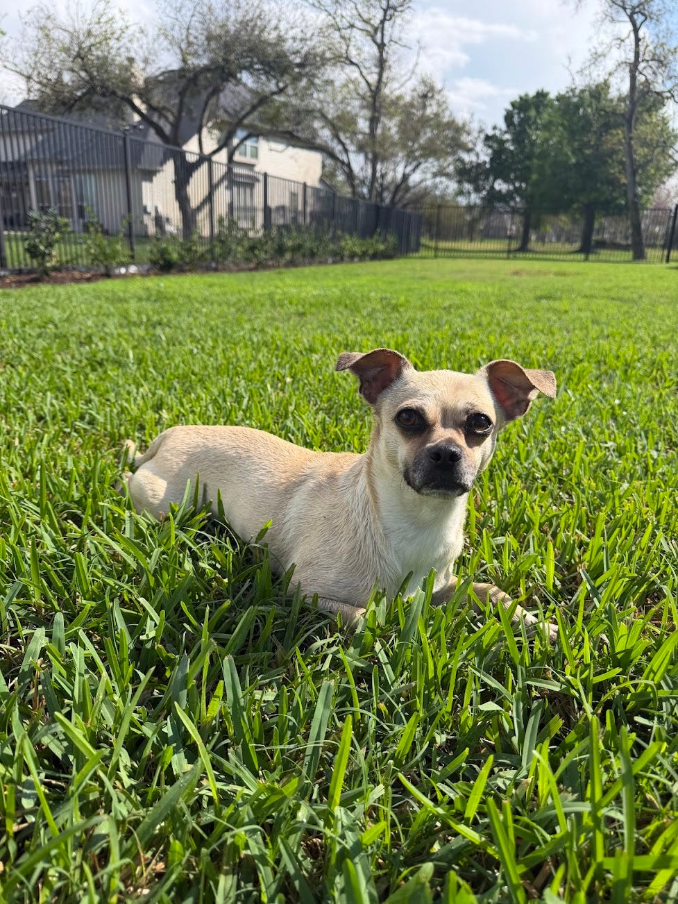 Another day, another opportunity for my wife to bring home a new foster dog. This one is named Puggy, and she is available for adoption through Jenni’s Rescue Ranch.