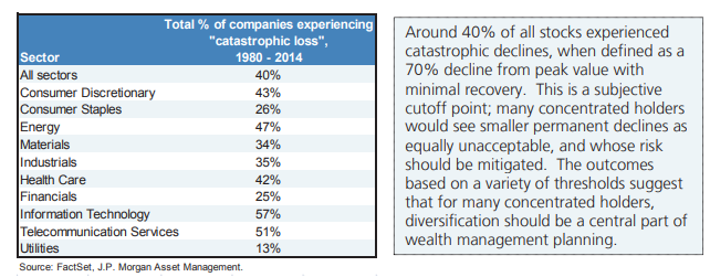 Keep those numbers in mind next time someone suggests you abandon your broad-based investment strategy in favor of a concentrated position that seems like a sure thing.