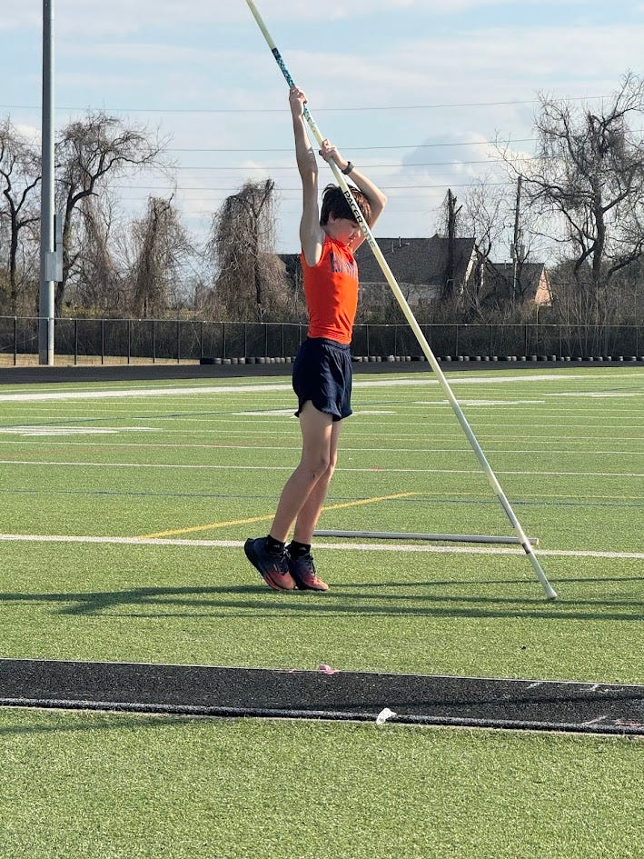 The middle school track season started last week. My 7th grader signed up for distance running and pole vaulting.