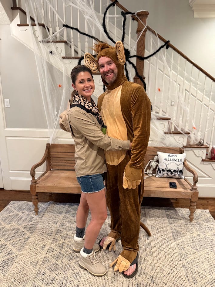 Unfortunately, I won’t have pictures of my kids’ costumes until later tonight. So for today’s note, you’re limited to this picture of my wife and me as Jane Goodall and a monkey.