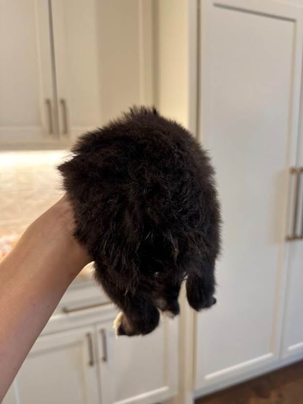 So, my wife brought this puppy to the vet; they shaved its backside, and everything turned out to be okay. No tail. Lots of fur. Everything normal.