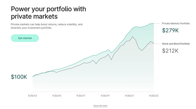 They put up charts like this one and say, “Private markets can help boost returns, reduce volatility, and diversify your investment portfolio.”