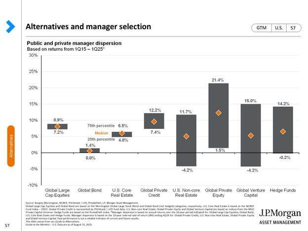 When you buy a traditional fund that owns a portfolio of public securities, the manager you select doesn’t really matter. The market will determine 99% of the investment’s return. The manager’s skill/luck will drive the small remainder.
