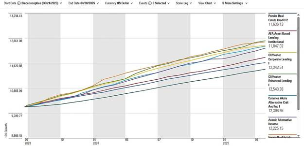 And as amazing as that sounds, of the 79 other interval funds out there, 7 had higher Sharpe ratios, meaning they showed essentially the same non-existent volatility but with even higher average returns.
